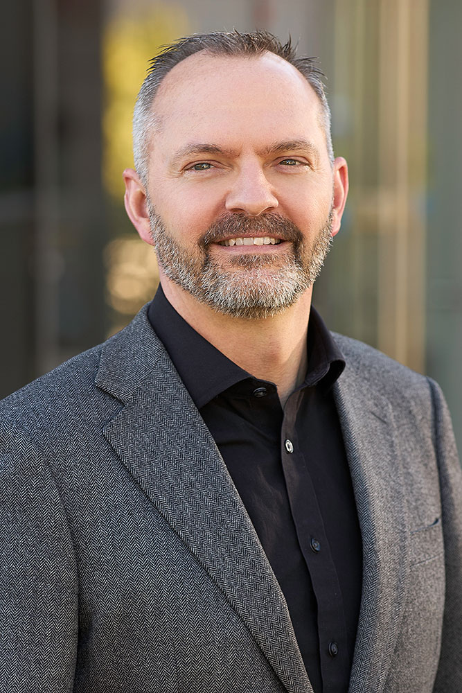 The thinking behind the backgrounds was to create a subtle hint of structure and glass while maintaining the casual vibe of an outdoor headshot. We originally planned to shoot indoors, but structurally the room felt a bit too rigid and constraining. Stepping just outside the doors gave us the best of both worlds — some architectural context, with extreme lens blur to obscure anything distracting. It’s a great approach for keeping corporate headshots feeling polished without coming across as overly formal.