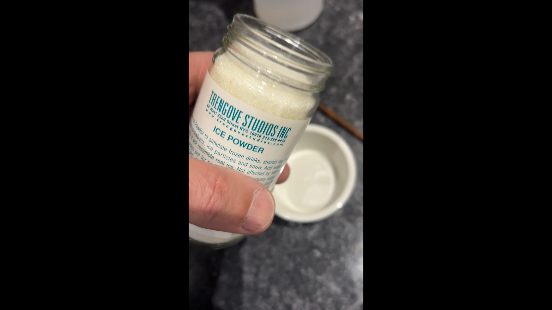 For this bottle, I wanted a fresh-from-the-cooler look which meant condensation droplets on the glass and a few choice ice crystals on parts of the bottle to really sell the concept. In order to achieve the droplets, it’s usually advisable to use a mixture of 50% water and 50% vegetable glycerin. It can be applied with any atomizer, but I like the Flairosol bottles. Before spraying the glycerin droplets on, it’s a good idea to clear coat the bottle with some Krylon crystal clear. This will be especially important when photographing bottles with paper labels. It serves to protect them from wrinkles and water stains during styling. It also helps the droplets have a tackier surface to stick to. Let it dry at least 30 minutes before applying the glycerin/water mixture. For the ice crystals, I use ice powder from Trengrove studios. This is a very unique item made for photo shoots. Mix with a few drops of water and you have beautiful, realistic-looking, gel-based ice which you can apply with a small paint brush. The crystals will retain their form for an hour or so on set, making them a better choice than real ice.